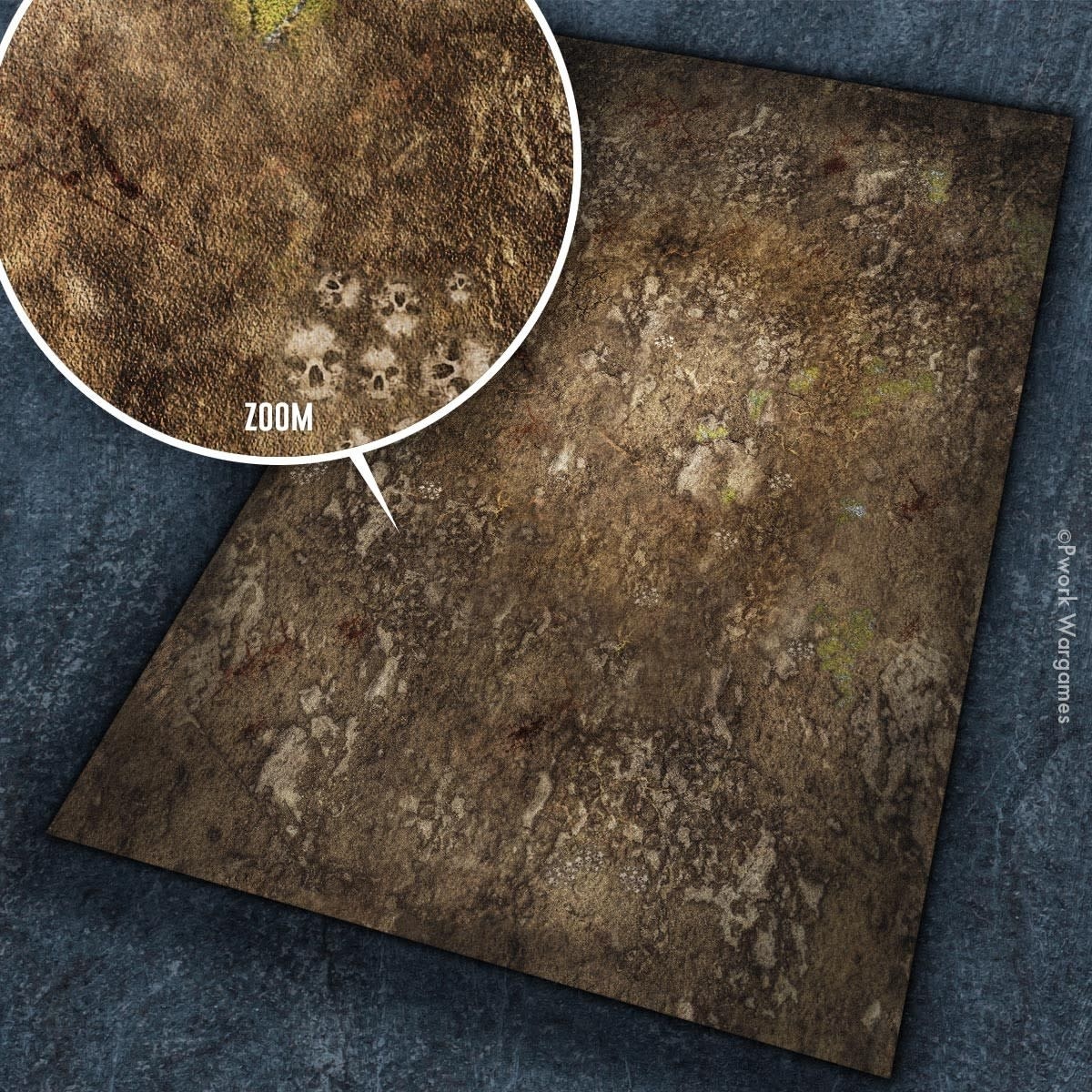Du erhältst eine Game Mat von PWork Wargames. Sie ist aus Gummi (Mausmatte) und rutscht nicht.