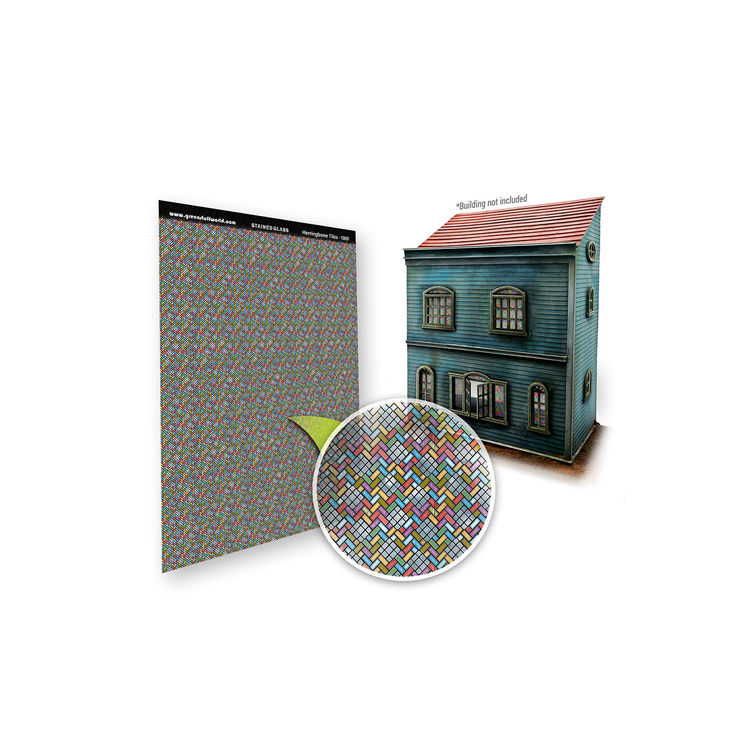 Du erhältst einen Bogen Buntglasfenster von Green Stuff World. Damit gibst du deinem Gelände das gewisse Etwas. Das Glas kannst du mit den Miniaturfenstern von Green Stuff World kombinieren und mit Weissleim oder Sekundenkleber befestigen.
