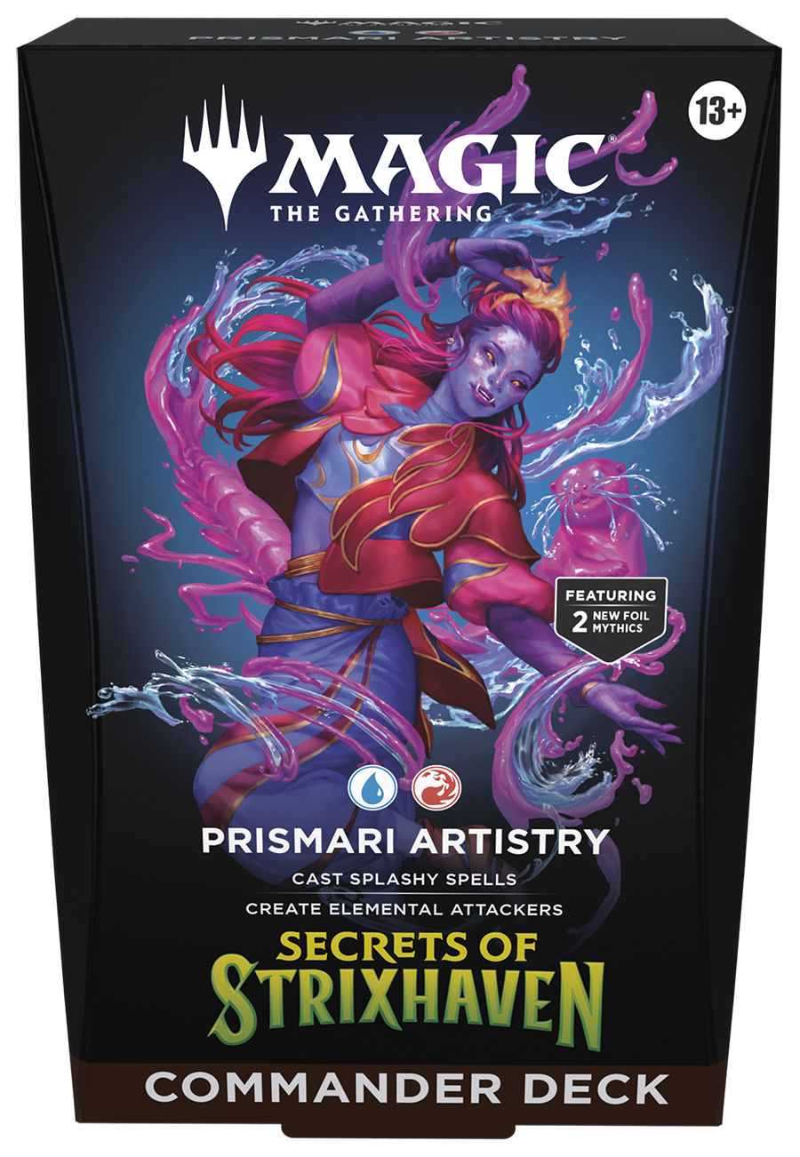 InhaltDu erhältst das Secrets of Strixhaven Prismari Artistry Commander Deck.
